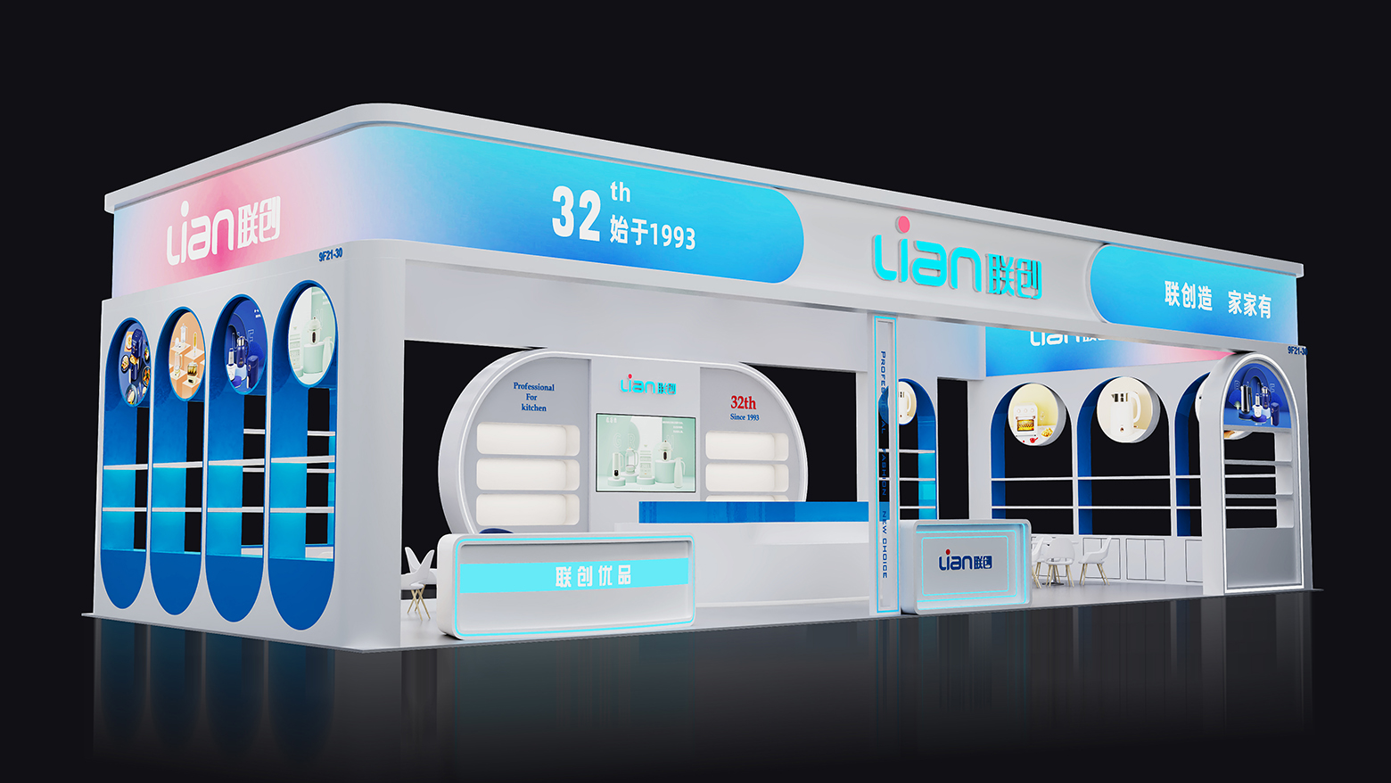 联创电器作为深耕小家电领域的品牌设计制造商,在此次展台设计中,充分融合了品牌特色与现代展示理念。