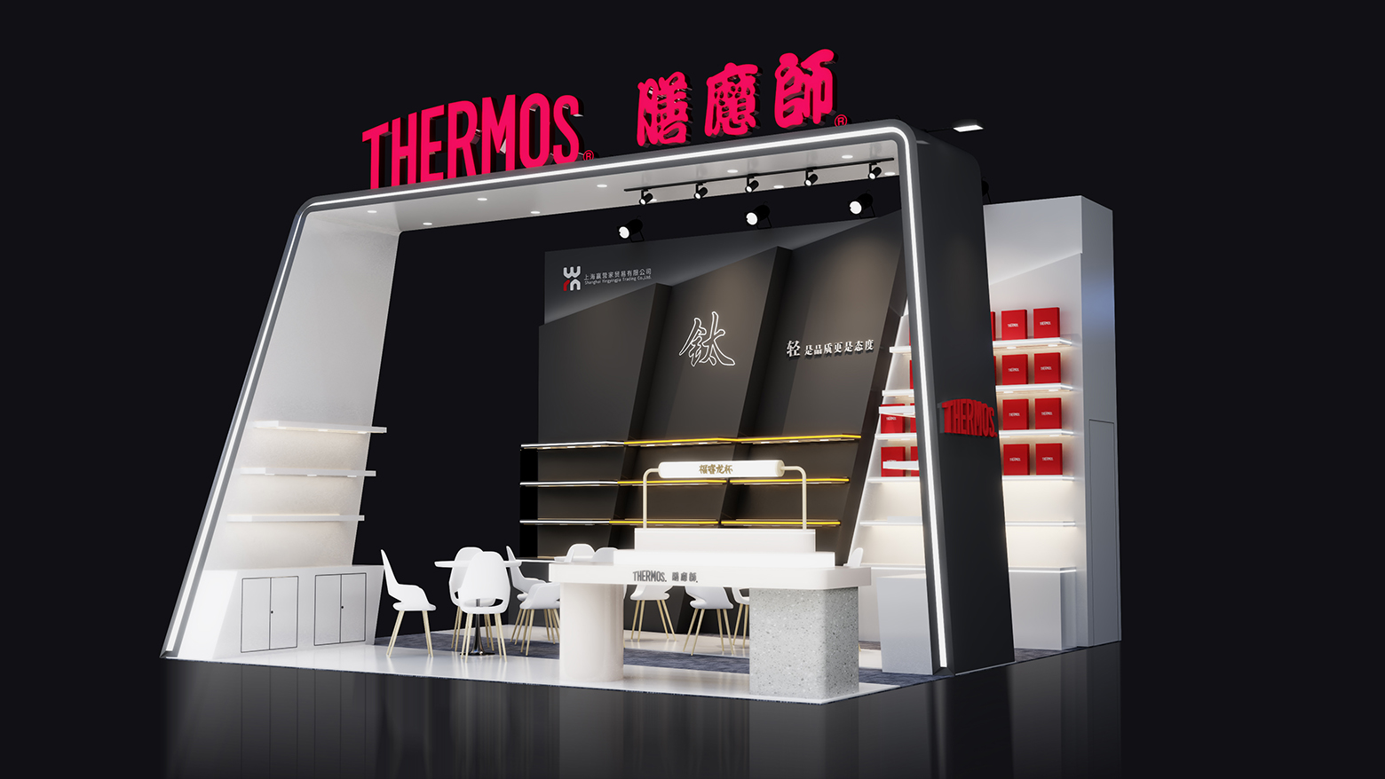 膳魔师作为保温杯行业的资深品牌,在2025年深圳礼品展中的展台设计尽显品牌风范。展台顶部以醒目的红色品牌标识吸引眼球,强化品牌记忆,彰显领导地位。